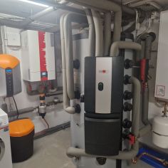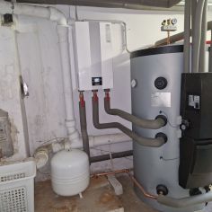 Vaillant Gaskessel, athmosphärisch mit 120 Liter Warmwasserspeicher. Im 1. Obergeschoss befand sich ein Vaillant Heizgerät mit 11 KW, sowie ein Durchlauferhitzer. Diese Anlagen wurden demontiert und alles auf eine Anlage zusammengeführt.